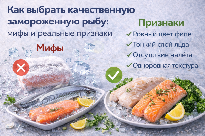 Ещё одно заблуждение — большое количество льда означает свежесть. На практике толстый слой глазури чаще всего говорит о повторной заморозке или неправильном хранении. Качественная рыба имеет тонкую, прозрачную глазурь, которая защищает продукт, но не утяжеляет его.