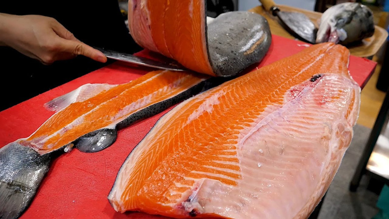 Совет: при работе с жирной рыбой (например, скумбрией или сёмгой) нож лучше периодически обмакивать в холодную воду — так филе не будет прилипать.