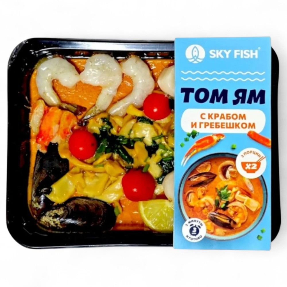 Ароматный острый суп тайской кухни с выраженной лимонно-травяной нотой и острым перцем чили, в котором главную роль играют нежный гребешок и сочное мясо краба. Формат замороженного полуфабриката позволяет быстро получить насыщенный Том Ям ресторанного уровня дома, сохраняя свежесть морепродуктов и аутентичный вкус