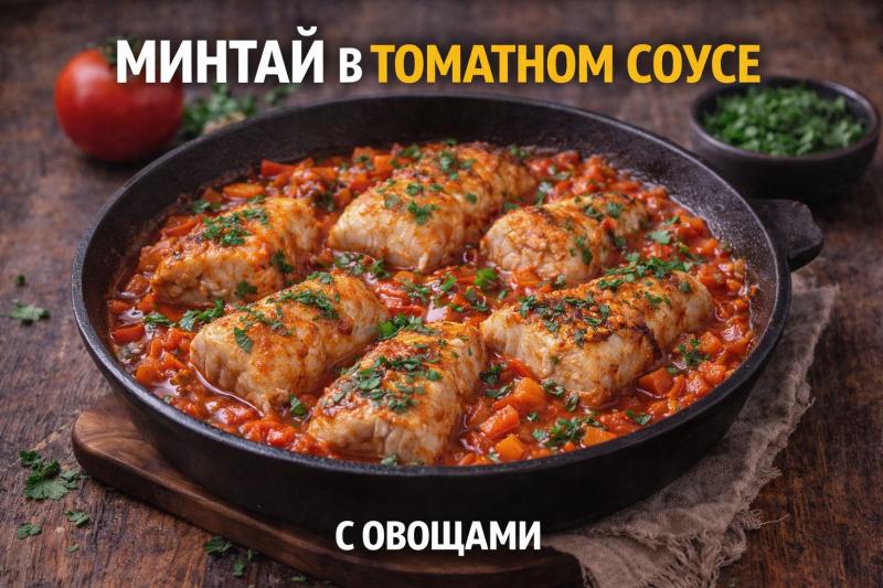 Минтай — один из самых доступных вариантов, но если приготовить его правильно, он получается мягким, сочным и насыщенным по вкусу. Томатный соус и овощи здесь не просто дополнение — они делают блюдо полноценным. Это уже не просто рыба, а нормальный домашний ужин.