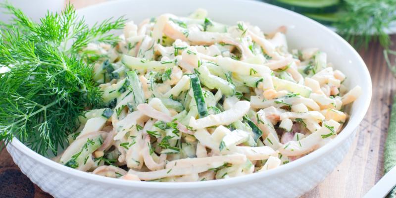 Салат с кальмарами и яйцом — классический вариант