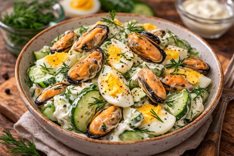 Салат с мидиями — это простой способ добавить морепродукты в рацион без сложных технологий. Он лёгкий, но питательный, и хорошо подходит под запросы «салат с мидиями», «салат с морепродуктами и яйцом», «рецепт салата с мидиями».