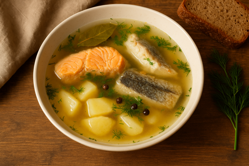 Уха — одно из самых тёплых и честных блюд, что только можно приготовить зимой. Ничего лишнего: чистый вкус рыбы, прозрачный бульон, аромат лаврового листа и укропа. Здесь важно не спешить и не кипятить рыбу до каши — тогда получится настоящая домашняя уха.